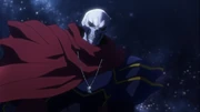 After being informed by Albedo that Shalltear Bloodfallen has rebelled, Ainz returns to Nazarick and tries to figure out why the vampire has gone rogue. He and Albedo head to the 5th Floor to visit Nigredo and uses her to find Shalltear. They discover that Shalltear is now fully equipped in her Bloody Valkyrie form. However, Ainz is informed by Narberal that the Adventurer's Guild at E-Rantel is looking for him. He then goes to the Adventurer's Guild meeting and discusses a powerful vampire. Momon convinces and insists to the Guild leaders, E-Rantel's authorities, and his fellow Mithril adventurers, that he will exterminate the vampire on sight. When the meeting is over, he goes to the forest and orders Albedo and Mare to dispose of Kralgra, who ignored his advice and chose to follow.