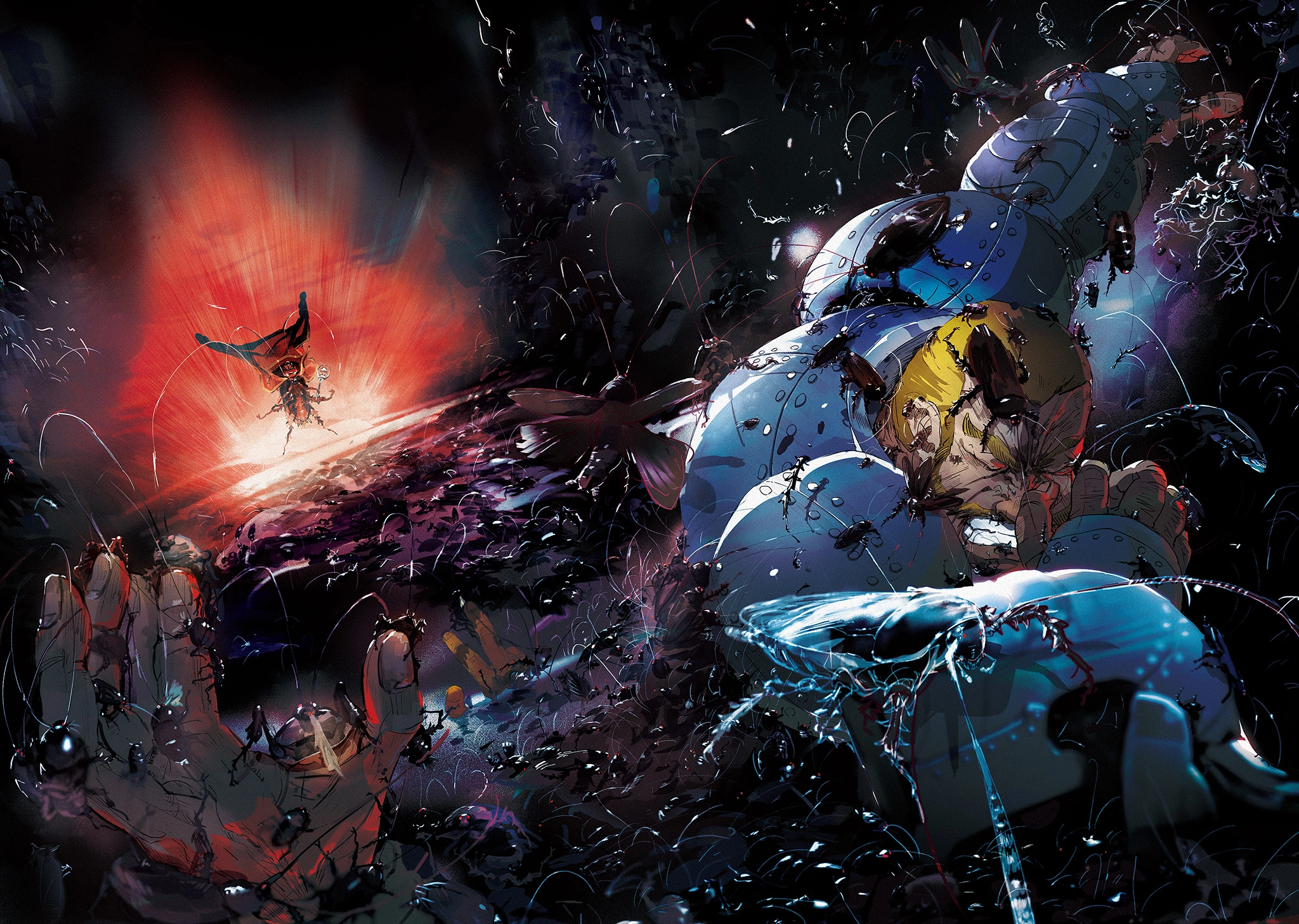 In this area, Kyouhukou can manipulate a tsunami-type tidal wave of cockroaches at the victims who are surrounded by these insects to consume them. Weapons were deemed useless in dealing with a swarm of tiny insects like cockroaches as it will be hit and miss. The victims are drowned in the ocean of cockroaches to the point that they will attempt to swim and flail for their life, however, with parts of their movement restricted as the insects weigh them down along the way. In the end, over the course of time, they will be engulfed by the excessive amount of cockroaches, having already squirmed their way into every part of the victims' body, including their mouth, throat, stomach, and ears while infiltrating through their clothing like their armor as well. This in turn, while the victims are writhing in pain, their body being eaten alive, and unable to make any further movement such as screaming.