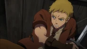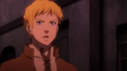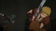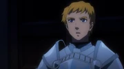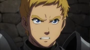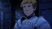 When Brain bids farewell to him and Renner, Climb voices his disapproval of the warrior's choice to leave them and fight the Sorcerer King. He is adamantly against Brain's idea of handing Gazef's weapon, Razor Edge, to him. Before he can complain any further, Climb is stopped in his tracks by his liege, as Renner tells him to respect the decision Brain had chosen. Frustrated at what the Sorcerer King has done to drive his friends away from his life, he bitterly walks away with Renner to help make some preparations before visiting her father.