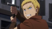 In the midst of several Cracks being formed in E-Rantel, releasing countless Chaos Beasts, Climb joined together with Brain and Lockmeier to complete a mission from Princess Renner to deliver Razor Edge to a specific location. The trio did their best to stay alive and avoid the roaming invaders in the city, but they were attacked by a pair of Giant Flying Chaos Beasts. To buy time for his comrades to escape Lockmeier sacrificed himself to distract the monsters.