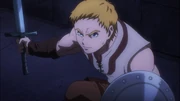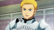 Climb is seen training by himself when he is interrupted by Gazef Stronoff. The two of them spar, with Gazef ending up the winner. After listening to the Warrior Captain's advice, he leaves to guard Princess Renner in her room.[2] He arrives to see Renner having tea with Lakyus Alvein Dale Aindra and Tina. He is then sent out by Lakyus into the streets of the capital to send a message to Gagaran and Evileye.[3]