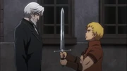 After Renner finishes her tasks, Climb accompanies her to the room where her father King Ramposa III is in. Although he is ordered by King Ramposa III to take Renner with him and flee from the Sorcerer Kingdom's army, Climb silently refuses to do so, as he cannot disobey his mistress's wish. It is to the extent that Climb even turns down the king's offer for his daughter's hand in marriage, all for the sake of following Renner's every word without resistance.