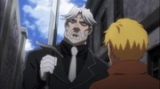When Sebas is told to come to a warehouse alone, due to Tuare's kidnapping, four of the Six Arms are there waiting for him. Climb, Brain, and Lockmyer decide to help Sebas out with his urgency to rescue Tuare. While Sebas is busy handling the majority of the Six Arms, they head off to search for Tuare and find her in one of the cells. However, it is actually Succulent who was disguised as Tuare in an attempt to get the latter to let down their guard. The attempt ends in failure as he is defeated by both Climb and Lockmyer. On the other hand, Brain fights against Zero until Sebas shows up and killed Zero with a powerful heel dropkick. It is right after the fight that all four notice a wall of flame within a distance of their location. Climb realizes the sudden change and decides to head back to the palace to find out what is going on. Sebas offers his thanks to the group for taking part in the success of rescuing Tuare and they all go their separate ways soon afterward.[6]