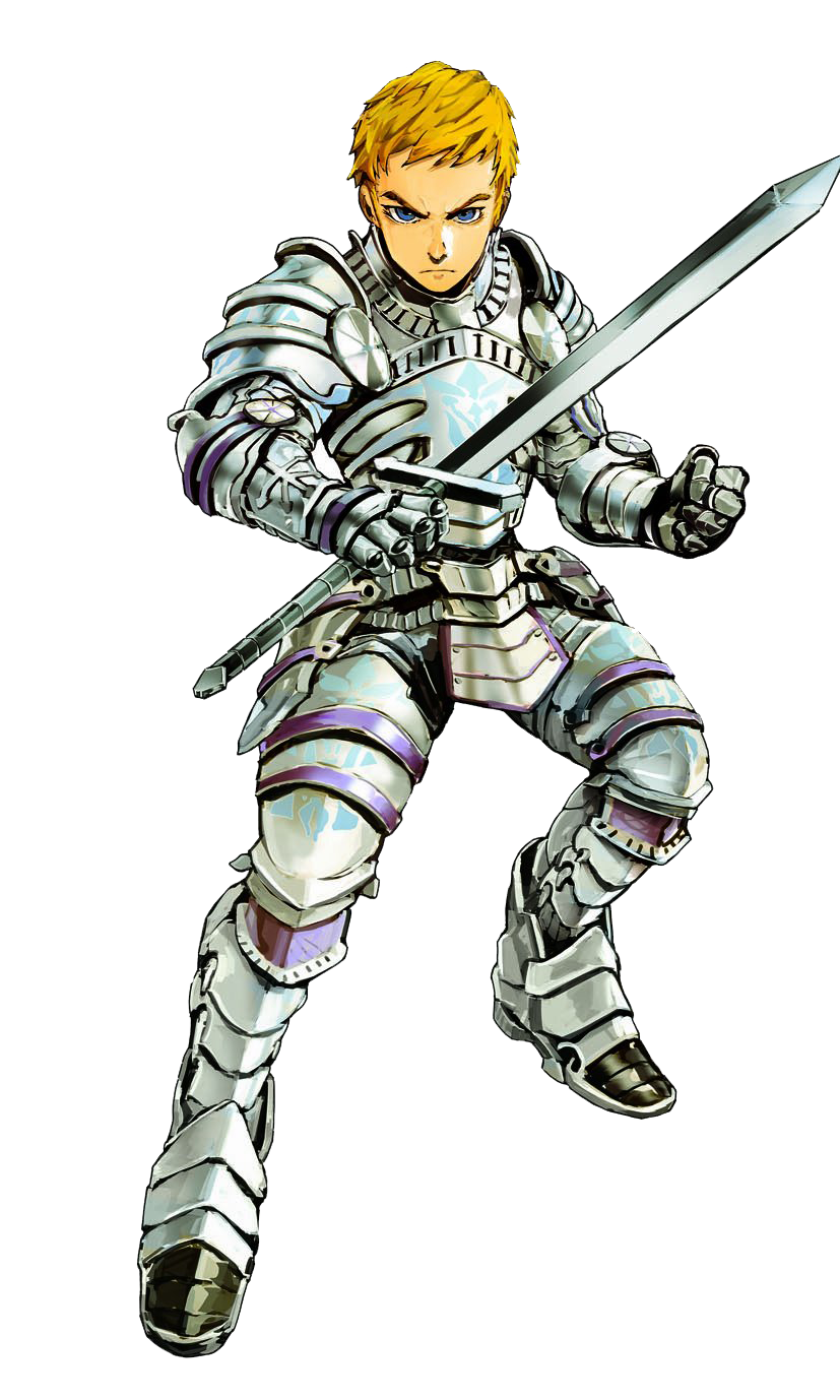 Climb is a young man with short blond hair and blue eyes. He wears pure white full plate armor given to him by Renner and is equipped with a broadsword and a shield.