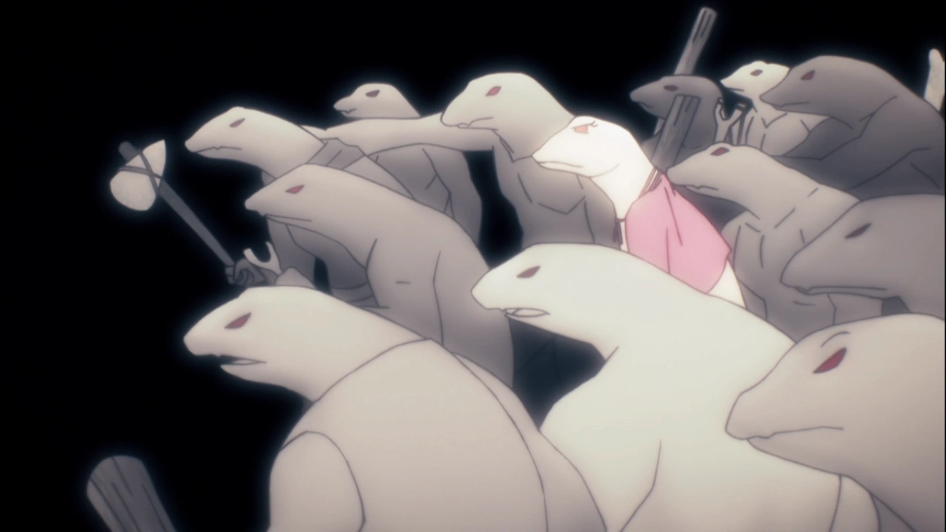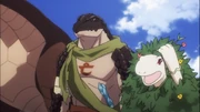 By coming there, however, they are met with hostility from the Dragon Tusk Tribe and it is particularly Zaryusu who gets their attention. As many members of the tribe were also former tribesmen of Yellow Speckle and Sharp Edge, tribes defeated by Green Claw in the resource war. Then Zenberu Gugu, leader of Dragon Tusk appeared and challenged Zaryusu to a duel before gaining his tribe's participation in the war and completing the tribal alliance. Crusch watches from the sidelines and witnesses Zaryusu's victory over Zenberu Gugu. After healing the two warriors, Crusch and Zaryusu are treated to a banquet.[1]