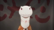 The lizardmen were graced by a visit from an entourage from the Sorcerer Kingdom when the village was celebrating Zaryusu's union with Crusch. The visitors included not just the usual faces, but none other than Prime Minister Albedo. For a change the lizardmen were sought help from their patrons, concerning information on usable fiber plants from the Tob Forests that could be used for fabrics. Crusch was introduced to Albedo who took an interest due to her pregnancy the two eventually became friends after the druid explained the material of the tapestry of the symbol of Red Eye. Crusch provided some information on the type of grass used and method. This intrigued Albedo who believed that she could adapt it and offered to make the female lizardman a handmade rug as a gift for her upcoming child.[11]