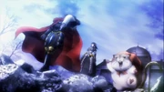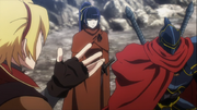 At some point in the journey, Torkel confesses his love to Nabe and proposes a marriage between them in private but was quickly met with a harsh rejection by the latter. During their travel together, Darkness came across a threatening monster known as the Gigant Basilisk from a nearby village hunting goblins. Realizing the danger that this monster can pose to them, the clients suggest that they should make a retreat that Momon refuses. The adventurer justified his concerns that if they let the monster escape, the Basilisk can prove to be harmful to people who may later encounter it. As a result, they went to confront the creature and easily defeated it with ease as well as going on to complete their main mission thereafter.
