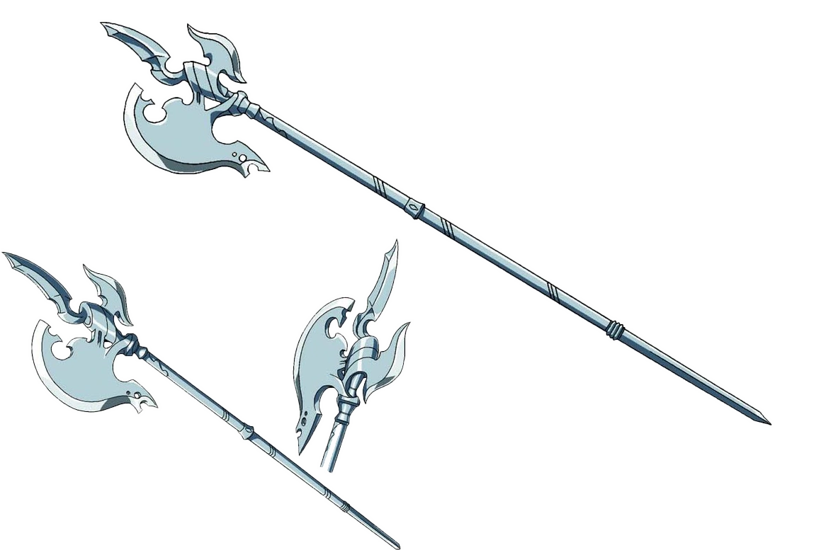 Decapitation Fang (断頭牙) is a halberd-type weapon mainly equipped by Cocytus.