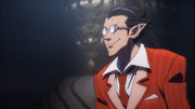 Once Solution reports Sebas' possible betrayal, Demiurge who assumes the worst were to happen to their master, suggests that they take caution and have Pandora's Actor masquerade as Ainz in order to test his loyalty. He is present along with Victim and Cocytus in observing Sebas' loyalty being put to the test while the butler was questioned by Ainz. When the butler arrives, he instructed Sebas from getting any close to their master. Demiurge confirmed to Ainz that he had not received any reports whatsoever from Sebas about Tuareninya Veyron. He and Cocytus directed their murderous intent at both the butler and Tuare until Ainz restrain them to stop.