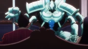 Shocked and angry after discovering that Ainz intends to fight Shalltear alone, Demiurge berates Albedo for letting him go off on his own. Extremely worried that Nazarick may lose its last master, he tells her and Cocytus that they must bring him back safe by any means necessary as he is now in danger of being possibly killed. Demiurge declares that he will gather his men to do so, but is stopped by Cocytus, who has been ordered to restrain him. Demiurge learns that the 7th Floor he had command over is already lock down by Albedo who have asserted control of all the vassals with permission from Ainz beforehand much to his dismay.