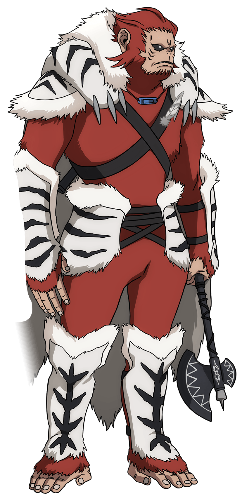 Fan Long is a red-furred ape-beastman and is 170 centimeters tall. He wears armor that seems to be made of white furs and has battle axes equipped on either side of his waist.