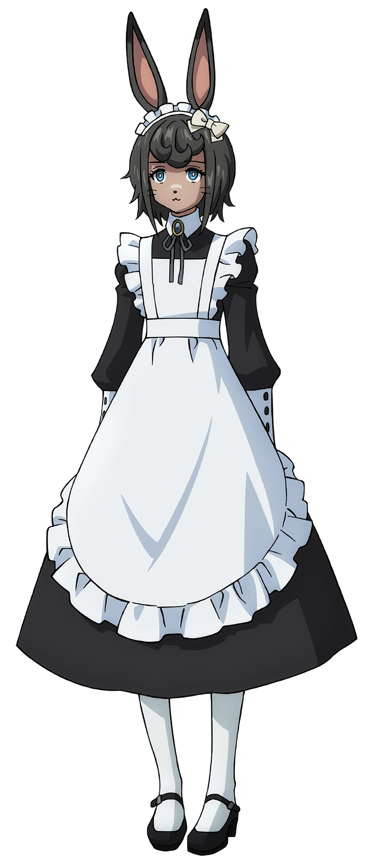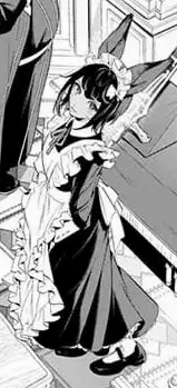 The Headhunter Rabbit disguised as a maid, greeted Pluton Ainzach along with his lord, the Sorcerer King into the home of Osk. He stood at attention watching Osk and Ainz exchange words. After Ainzach and Ainz left, Osk asked him to evaluate Ainz's strength and abilities, to which he replied that they're terrifying.[1]