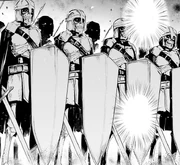 Several hundred Guarders were present at the Massacre at Katze Plains.[4] After Ainz Ooal Gown personally destroyed the Royal Army, he and Albedo were escorted by Nazarick Old Guarders to E-Rantel.[5]