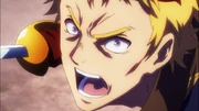 The Calming Effect kicks in and Ainz returns to a rational mindset, elaborating that is his feeling, but doesn't blame them for trying as it was to try to survive; and that the anger in him is a selfish reaction to their lie. But, in the role of Overlord, Ainz orders all who can hear him, Aura and Albedo present, to cover their ears. Unheard, Ainz says he didn't want to bring them into Nazarick, but it was all a plan by Demiurge. Done complaining, Ainz removes his top robe, ready to fight. Shalltear in the audience stands fangirls over his look, with a hidden Cocytus pulling her down; with Hekkeran momentarily wonder what the sound was. Ainz orders them to uncover their ears, as he holds a High Tier sword & shield combo.