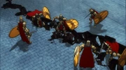 It is then that Roberdyck hands his coin pouch to Arche to flee, to get back to her sisters as the others fight Ainz to buy at least ten seconds for her to run away. Seeing this, Ainz states he thought they would have a more disgraceful exit, but Imina & Rober did so as they are comrades, asking Ainz if his old friends were not the same; he confirms they were. Ainz then recites the saying his friends would say (John 15:13), believing it from the Gospel of Mark but is uncertain. Imina implores Ainz to let Arche go. Ainz lets her go, but orders Shalltear to follow her and when despair consumes her to give Arche a merciful death. Roberdyck then attacks questioning how is that a mercy. Ainz elaborates to him that in Nazarick, death is a mercy of freedom from suffering in life, stunning the Battle Cleric. Imina and Roberdyck then engage Ainz to buy Arche time to escape.
