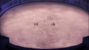 In the Sixth Floor Amphitheater, Aura announces Team Foresight, and grandiosely introduces Ainz Ooal Gown, wearing his signature God Level Rings; but he is dressed in a simple robe and trousers while wearing an EXP boosting shackle collar. Albedo follow behind him as his "cornerman" and the two stand before Team Foresight.