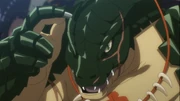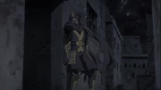 Hearing Gondo's aim to keep his father's great name alive strikes a chord in Ainz, who offers his patronage and plans to gather all Runesmiths under Gondo's leadership in exchange for Gondo's service to Ainz; Gondo gladly accepts the offer. Outside the tunnel, Gondo is shocked to see Ainz's convoy, and Shalltear reports that scouts located a hundred unknown demi-humans. Gondo asks if they are Quagoa, the demi-humans who forced the Dwarves to abandon the city, and who eat rare metals in their youth to mature into stronger fighters with pelts as strong as the metals they eat, doubling as armor. Intrigued, Ainz orders Shalltear to capture them and, after forming a plan with the Hanzos, succeeds with [Mass Hold Species] while the Hanzos confirm all the Quagoa were captured. Pleased, Ainz then orders Shalltear to gather intelligence from the Quagoa while the horde leader refuses cooperation until Shalltear uses [Charm Species]. The charmed Quagoa unintentionally offends her, but Ainz interjects to keep his control going and Shalltear asks what the Quagoa's aim in the abandoned city was. Explaining that they serve their Clan Lord Pe Riyuro and that they were to kill any Dwarves fleeing after the attack on the city up north. Shocking Gondo, the Quagoa troop leader looks at him with malice to happily speak that his people found a bypass around the Great Rift leading to the city, and the fortress protecting the connecting bridge will be destroyed soon enough with his people eradicated after that.