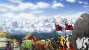 Zenburu informs Ainz that the convoy is ready, and Ainz sees Zaryusu Shasha next to Crusch Lulu holding their child close to her, as Ainz thinks to himself that he's not gonna snatch her child away, but he wouldn't mind having one if they made more since they're so rare. After setting a course, the convoy reaches far into the Azerlisia Mountains where Ainz uses [Create Fortress] to make camp for the night. In his quarters, Ainz thinks to himself about Runes in the New World questioning if a player brought them from YGGDRASIL. Still, he wants the technology, and coming personally to establish diplomatic ties shows sincerity while Demiurge and Albedo deal with the vassalization of Baharuth, heated as to why Jircniv would surprise him with the request. Pondering if Demiurge did anything behind the scenes, he tables the thought as he trusts his guardians to handle it. Outside Ainz's room, Aura asks Shalltear to pick a room, and the vampire accepts whichever room Aura doesn't choose. Asking about her notes, Aura sees Shalltear wrote every detail Ainz did on their way over and asks if her notes are helping, which Shalltear doesn't know. Fatigued, Aura chooses a room and finds Shalltear to be a dumb little sister now, praying to her creator to watch over Shalltear on their expedition. Come morning, Zenburu brings Ainz to the entrance to the Dwarf city he visited, and Ainz orders the five Hanzo on duty to scout the city. When they reported that it was abandoned, they confirmed someone alone was mining further ahead, so Aura went to greet him and frightened him too.
