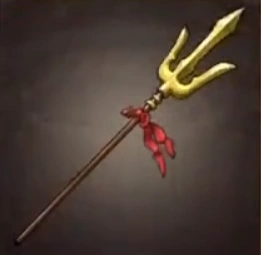 It has the form of a three-pronged golden blade spear.