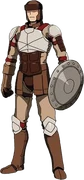 They arrived at Carne Village and met the mysterious magic caster named Ainz Ooal Gown, who saved the village from the attacking knights. However, the village was now surrounded by a group of unidentified figures and they realized it was a trap. They engaged the Sunlight Scripture in a fierce battle but they are overwhelmed by their magic. However, they were safely teleported back to the village storage house thanks to the help from Ainz who gave him a cash item which saved his life.[2][3]