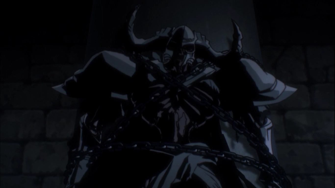 The Wild Death Knight is pretty much identical to the same Death Knight that originates from YGGDRASIL. The only real difference is that it did not appear have a tower shield and flambarage sword equiped, since it was chained up deep beneath the vaults of the Ministry of Magic in imperial capital of the Baharuth Empire it is unknown if they were already removed.